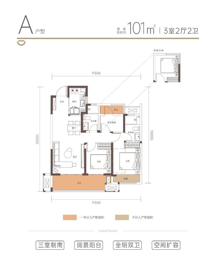 改善型三居室全龄户型,聚焦品质生活需求,空间布局更加合理,功能分区更加明确,居住舒适度更高。户型采用大面宽、短进深设计,最大化提升了采光面,让室内每个空间都能享受充足的阳光。客厅轩敞明亮,与南向阳台相连,阳台宽度充足,可打造为休闲区、健身区或亲子互动区,满足全家多元需求。客厅与餐厅一体化设计,形成开阔的公共活动区域,无论是家庭聚会还是朋友宴请,都能从容应对。主卧套房设计,配备独立卫生间和衣帽间,私密性强,彰显品质;主卧内设置了舒适的睡眠区和休闲区,夫妻二人可以在这里放松身心;独立卫生间干湿分离,配备了高端卫浴设施,提升使用舒适度。次卧空间宽敞,采光通风良好,可作为儿童房,房间内设置了学习区、游乐区和储物区,满足孩子的成长需求;第三个卧室可作为长辈房或客房,房间内设置了防滑地面、扶手和充足的采光,同时预留了书桌和休闲座椅,方便老年人阅读或休息。厨房采用开放式或半开放式设计,与餐厅相连,增强了空间的互动性,配备了高端节能家电、嵌入式储物柜和充足的操作台面,让烹饪成为一种享受;餐厅内配备了高档餐桌椅,可容纳八人就餐,适合全家聚餐和朋友聚会。此外,户型还设置了独立的书房,书房内配备了书桌、书架和休闲座椅,可作为家庭的学习空间或工作空间,也可改造为茶室、健身区等,灵活性强。