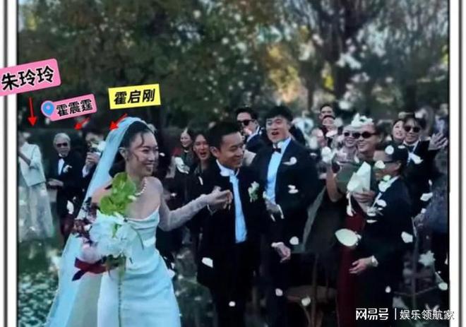 婚礼现场,朱玲玲身着白色套装,全程举着手机记录新人的每一个瞬间,脸上洋溢着幸福的笑容。霍震霆则穿着黑色西装,戴着墨镜,站在朱玲玲身边,显得精气神十足。霍启刚也出席了婚礼,站在父亲身边,用手机记录下这美好的时刻。尽管郭晶晶和霍启山未能现身,但这场婚礼依然充满了家族的温暖与支持。