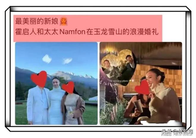 霍启仁与新娘Namfon在玉龙雪山举办了一场浪漫的婚礼,这场婚礼不仅吸引了众多豪门家族成员的出席,更因新娘的气质与穿着引发了网友的热议。婚礼现场,霍启仁的父母霍震霆、朱玲玲以及哥哥霍启刚均现身,为这场豪门婚礼增添了更多关注。